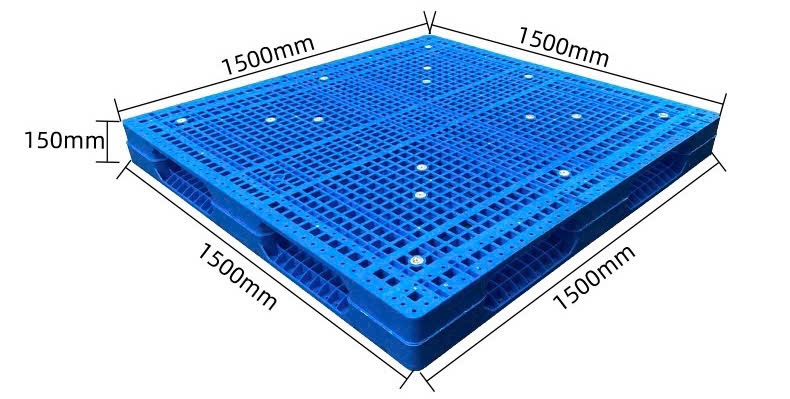 Pallet nhựa 1500x1500x150mm mặt lưới màu xanh là giải pháp lưu trữ và vận chuyển tối ưu cho doanh nghiệp có nhu cầu chịu tải lớn. Với kích thước vượt trội, tải trọng cao cùng độ bền chắc chắn, pallet này đáp ứng tốt các ngành công nghiệp, kho vận, logistic, thực phẩm và kho lạnh.