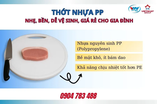 Thớt nhựa PE và PP Việt Nhật an toàn thực phẩm, bền, giá tốt cho gia đình.
