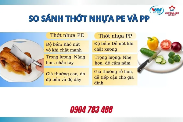 Trong nhiều gia đình hiện nay, người ta thường kết hợp cả hai loại: dùng PE cho thao tác chặt nặng và PP cho việc thái rau củ, đảm bảo bếp gọn gàng, an toàn vệ sinh và kéo dài tuổi thọ dao.
