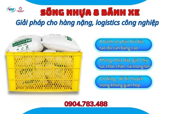 Với khả năng chịu tải vượt trội, sóng nhựa 8 bánh xe là lựa chọn lý tưởng cho các doanh nghiệp cần giải pháp vận chuyển khối lượng lớn, tần suất cao.